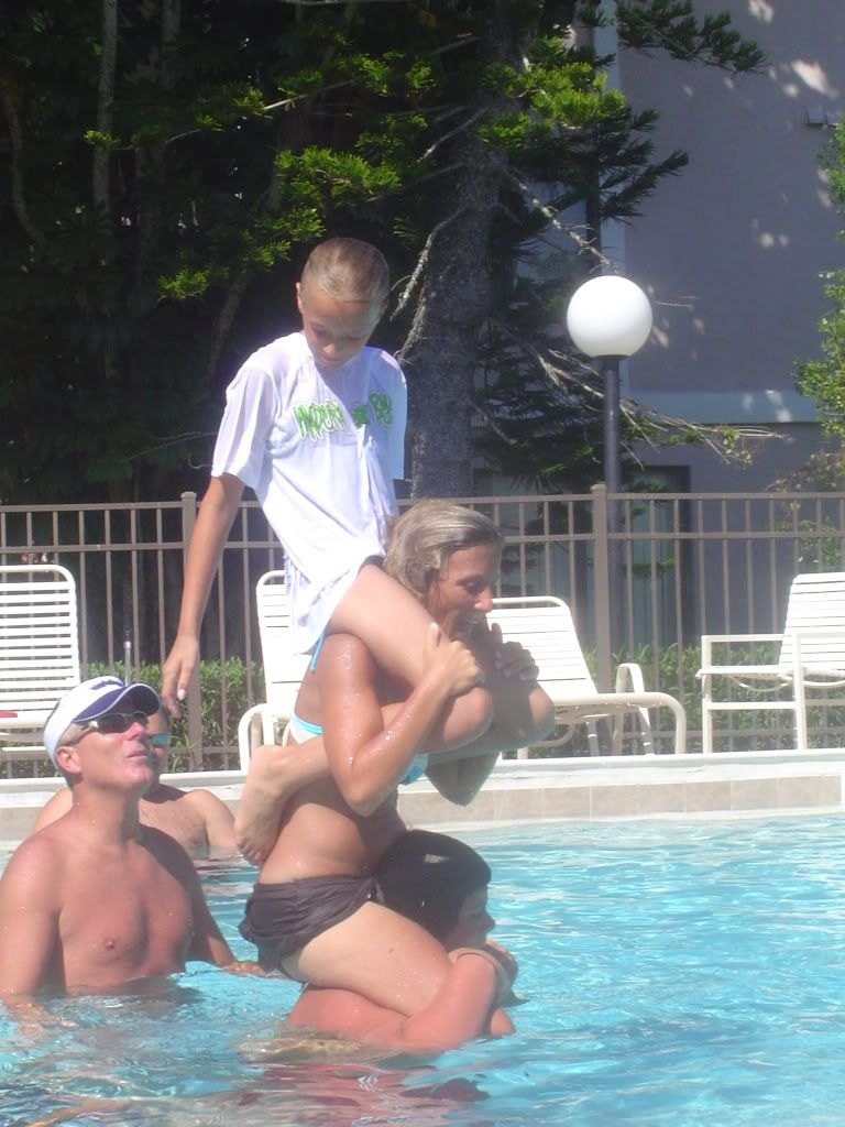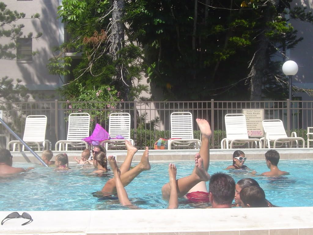 This afternoon the craziness came out. First we had handstand contests. Then there were contests to see how long you could swim underwater without taking a breath.