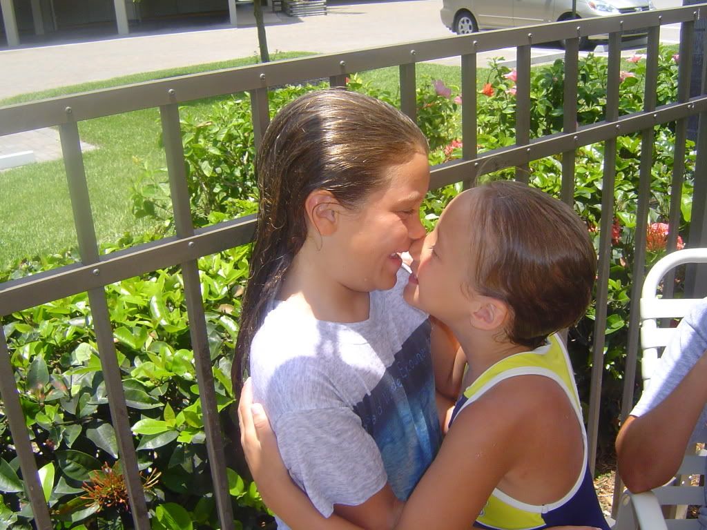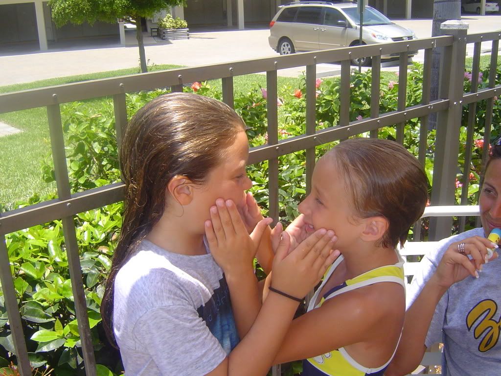 Sierra and Abigail were not getting along today at the pool, so my sister Michelle and I brought the two girls together so we could talk it out.