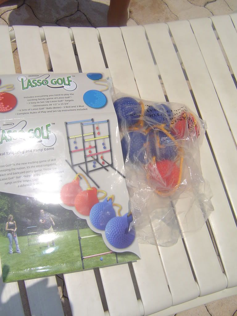 Mom and Dad bought a new game called Lasso Golf. Stephanie set it up and then the games began.