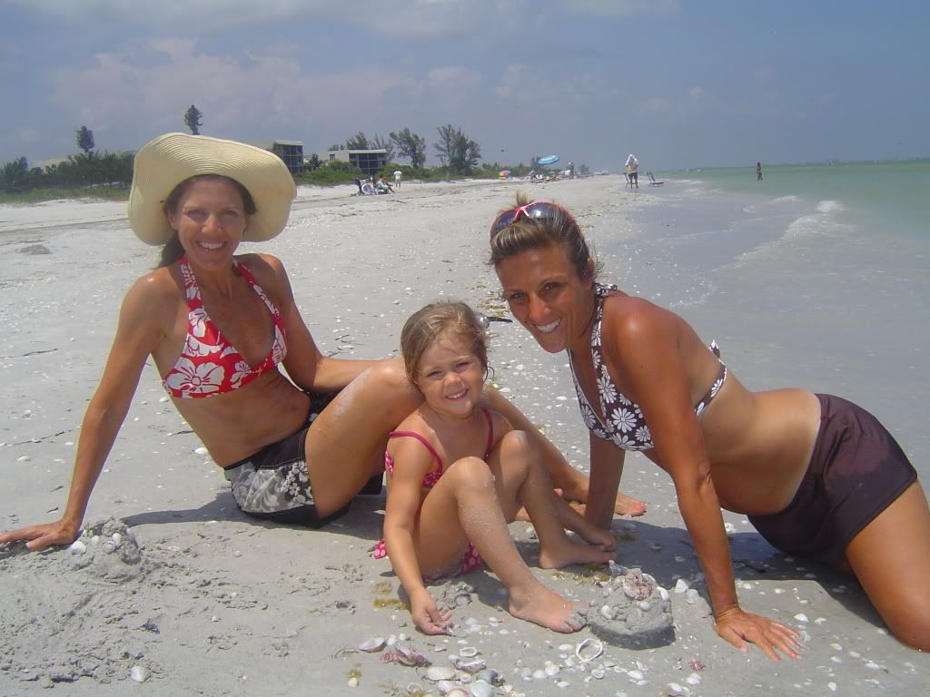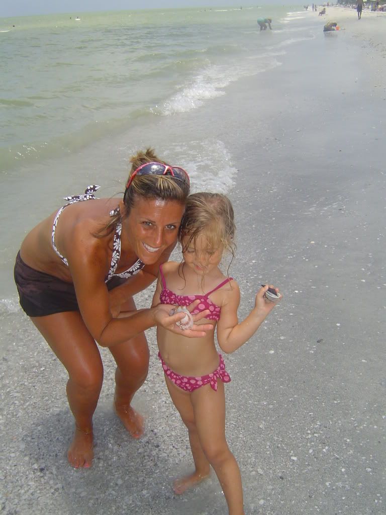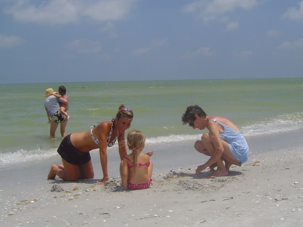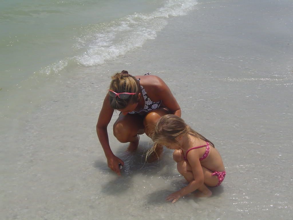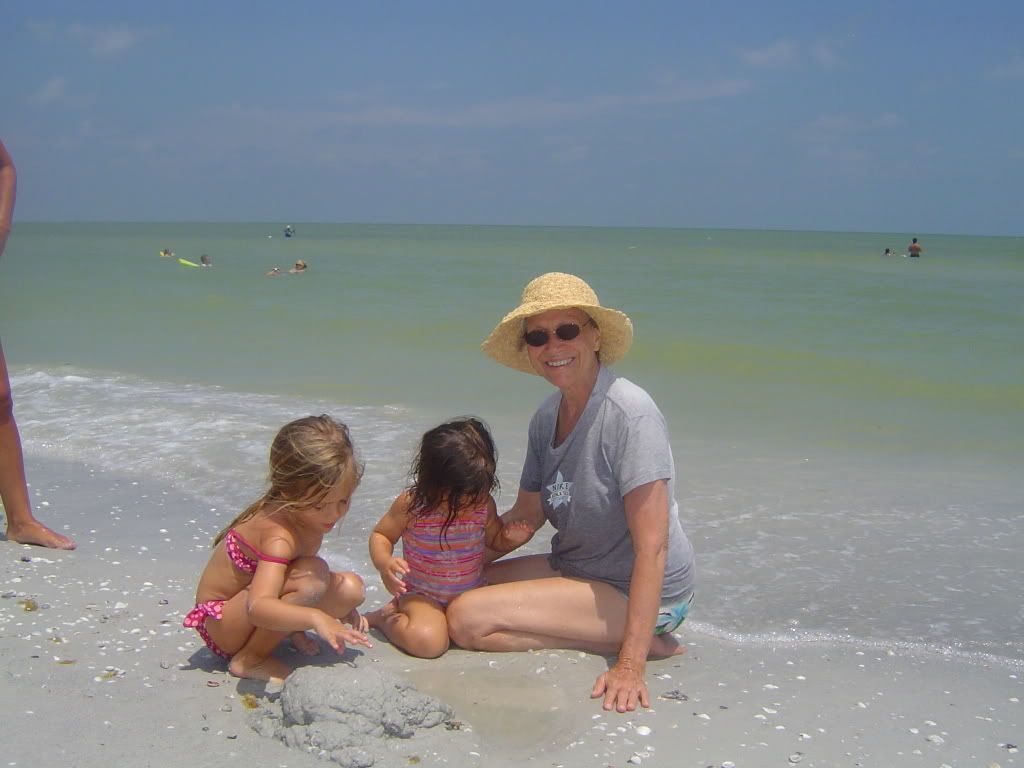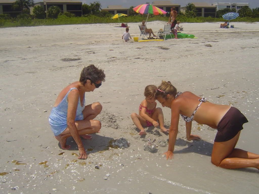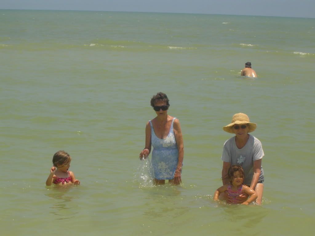 After lunch we all headed to the beach. A wonderful seabreeze had come in and it was actually cooler at the beach. Mom, Emily Grace and Ansley Faith looking for shells.