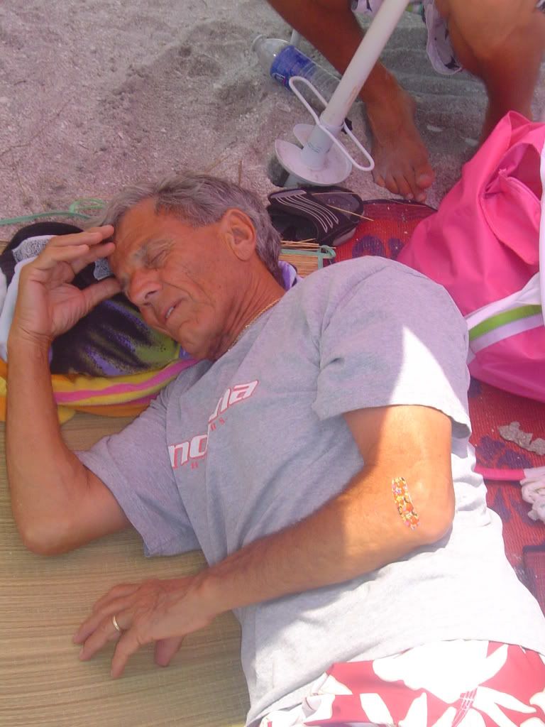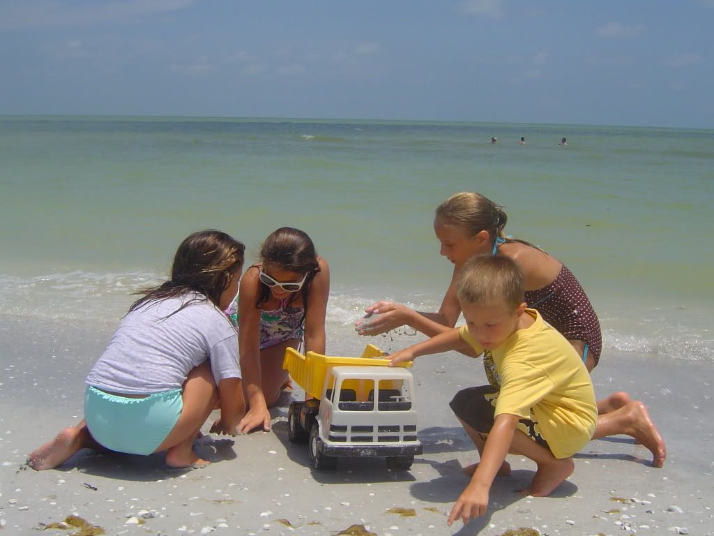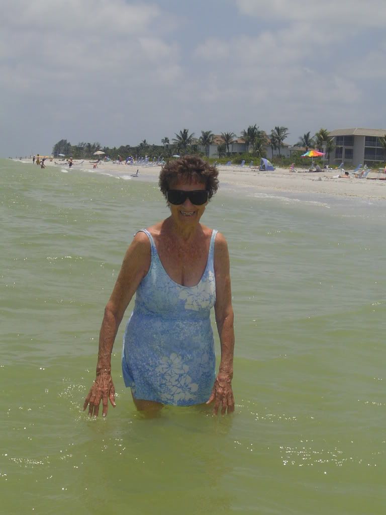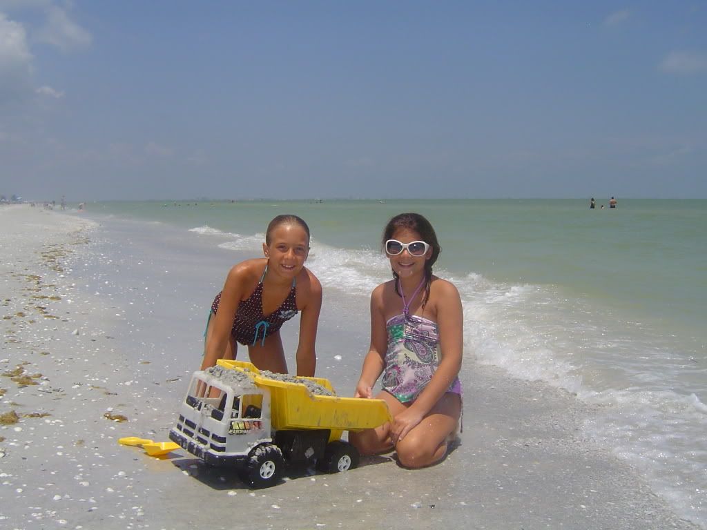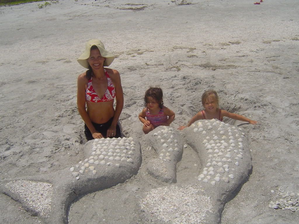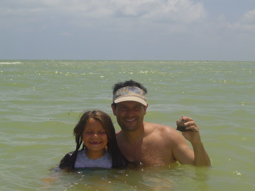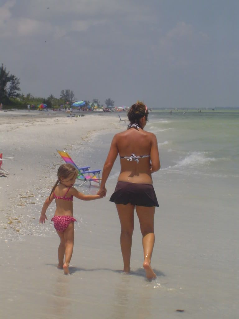 After lunch we all headed to the beach. A wonderful seabreeze had come in and it was actually cooler at the beach. Mom, Emily Grace and Ansley Faith looking for shells.