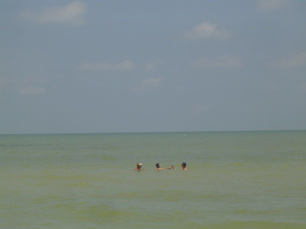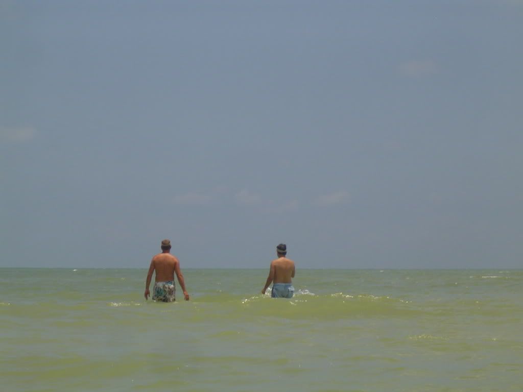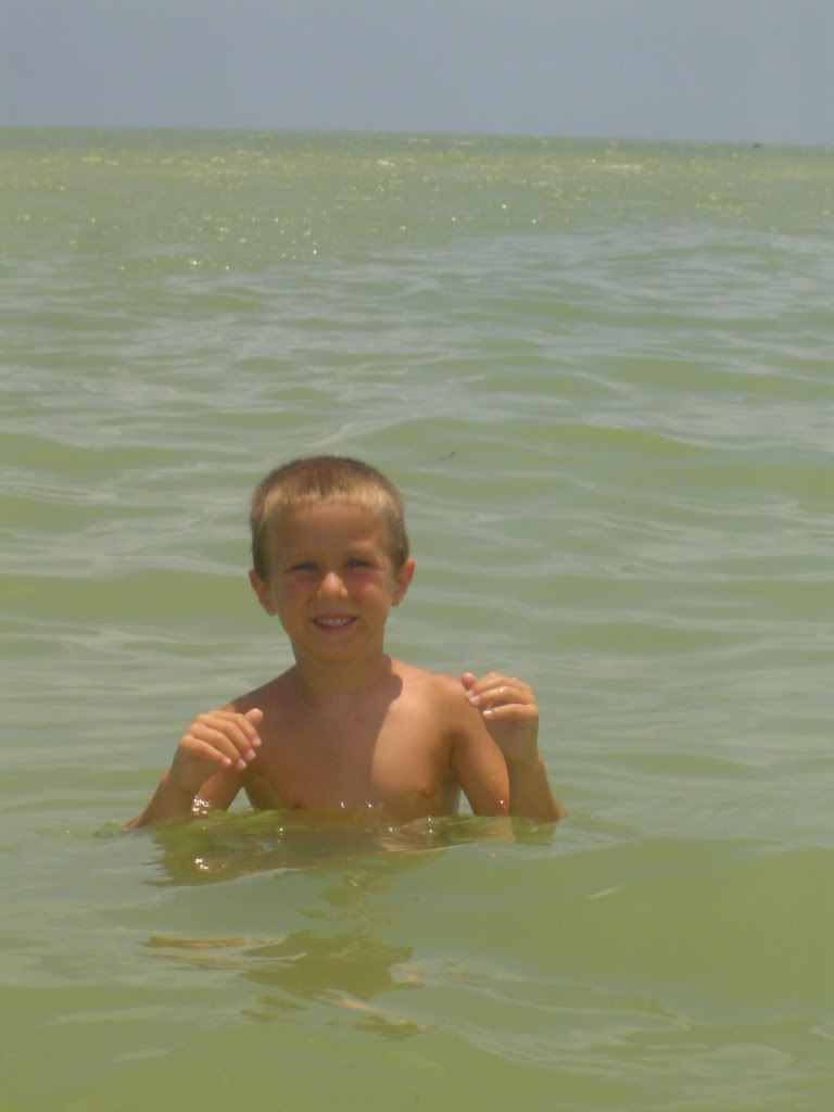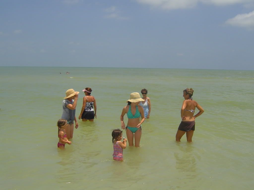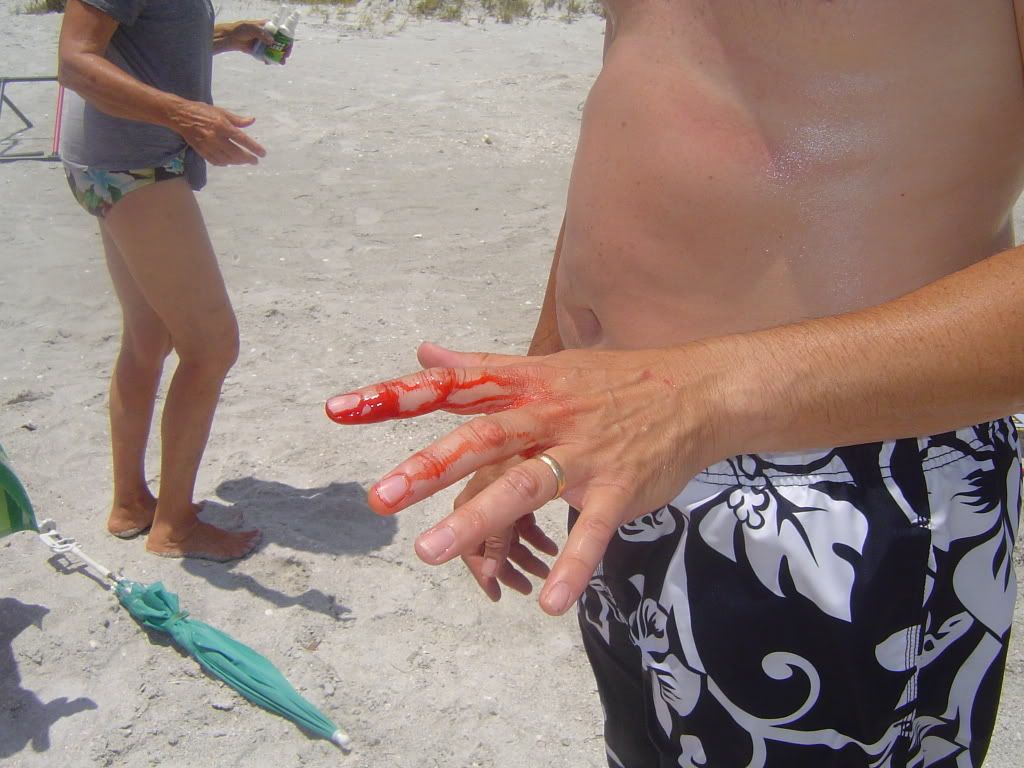 Joe came in from the water with a bloody hand. We all started to "freak" out a little bit. He told us something kept kicking his leg and he reached down and it bit him. Well, that totally freaked us all out.