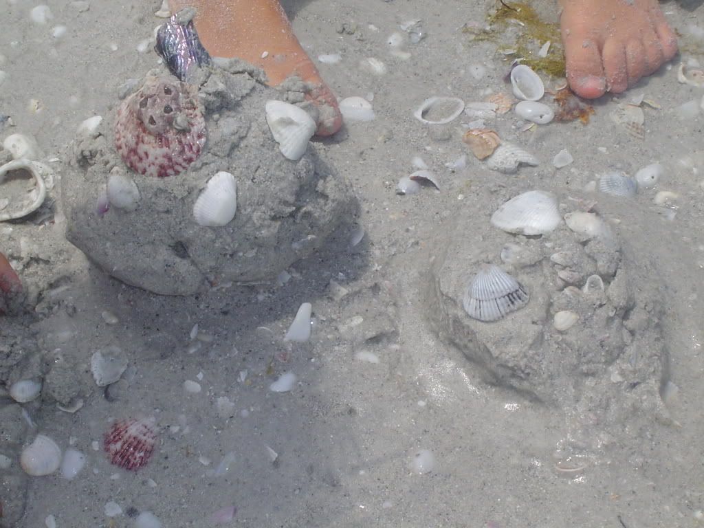 Emily Grace and Stephanie ended up making these cute little sand castles when they were on their walk. Emily Grace ran all the way back to where I was and said, "Come on Aunt Emmy! Come here!" So, I followed she and Stephanie down the beach. She wanted to show me that she made three little sand castles . . .one for Aunt Emmy, one for Aunt Stephie and one for her.