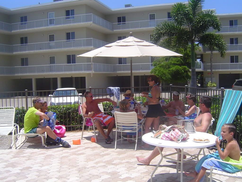 For lunch Steph made this fantastic bean dip. The rest of us cleaned out our refrigerator's and brought everything we had left down to the pool for lunch.