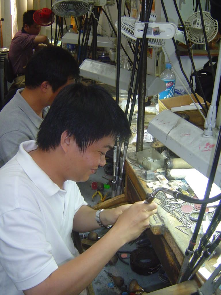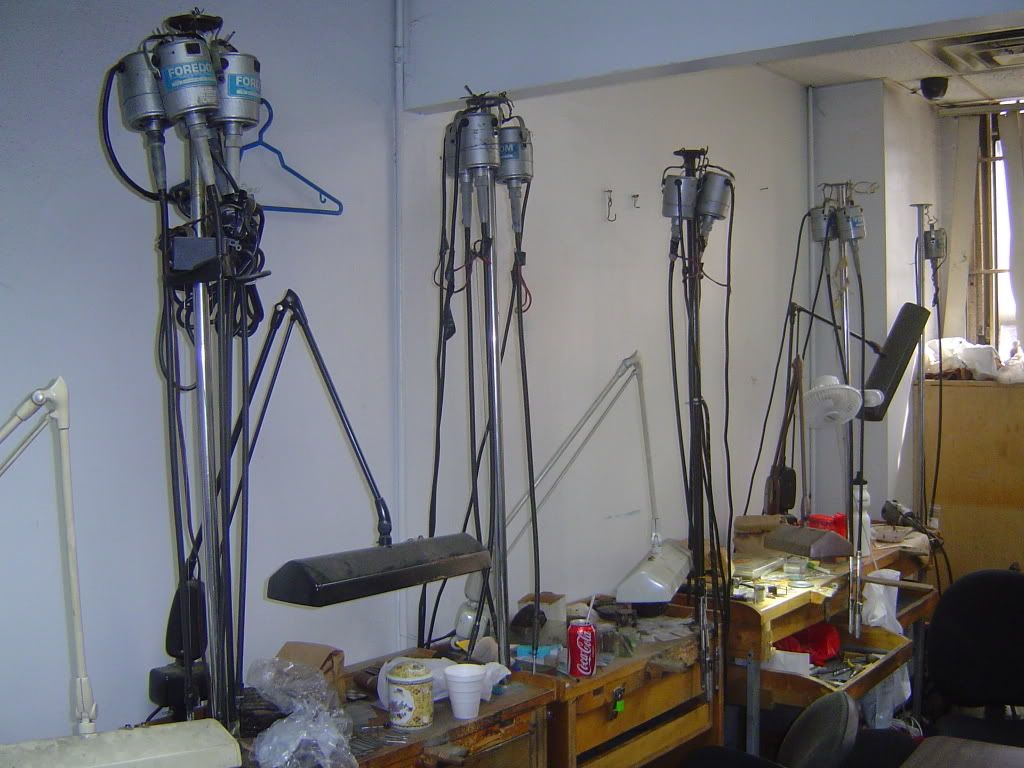 We were given a tour of the factory! What a fun experience. For those of you who have been to the Diamond District you know it is jewelry store after jewelry store. Well above all those stores are the factories where they are making the jewelry.