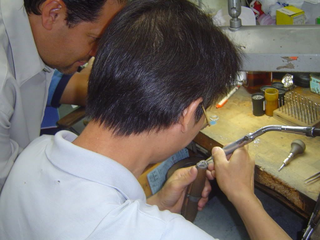 Here Carlos is watching the worker put diamonds in a ring.