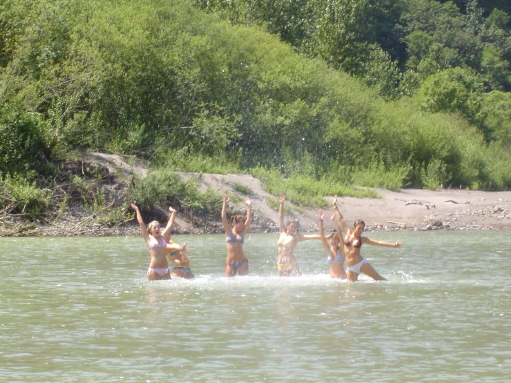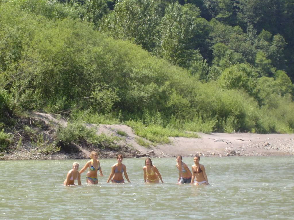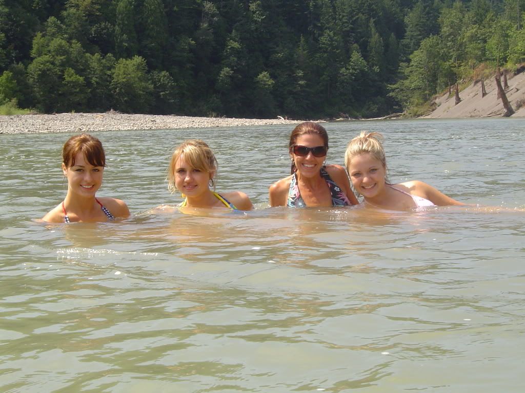 We then swam down the river. We went pretty far and then decided to turn around. Little did we know how strong the current was . . .we then had to maneuver to the shoreline . . . that was difficult because as you got closer to shore we came upon many rocks. Then once we made it on to shore . . .we about burned our feet off from the hot sand. I never laughed and screamed so much in my life.