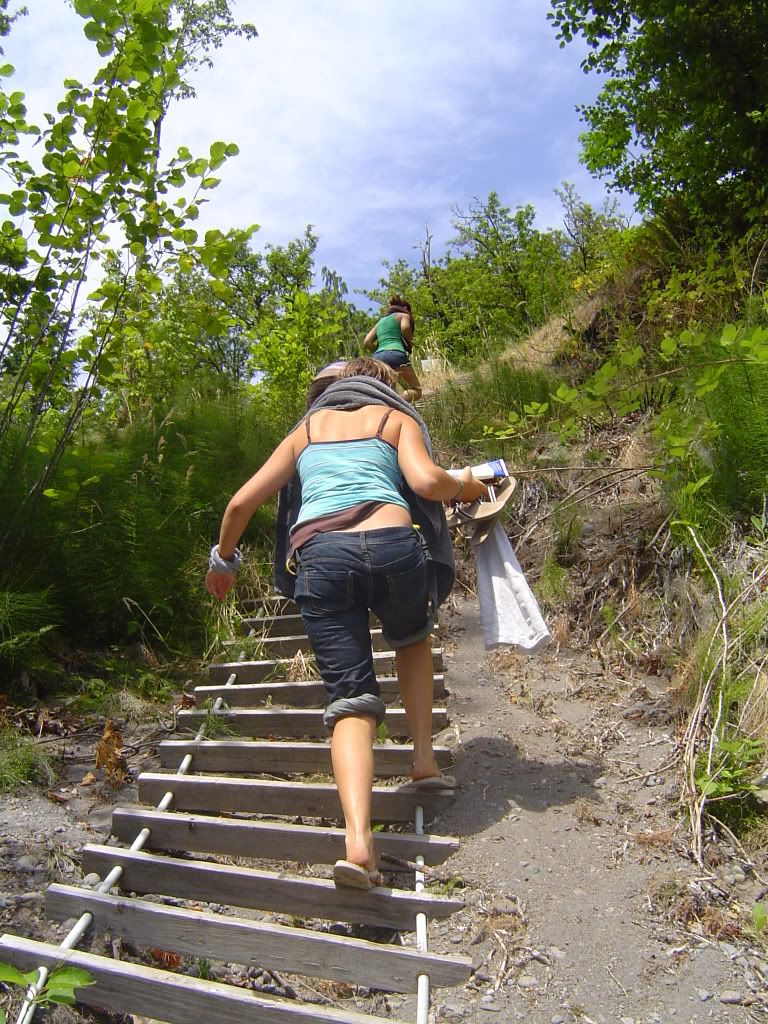 I took a look over the cliff and saw this long staircase. Then all the girls started down towards the beach.