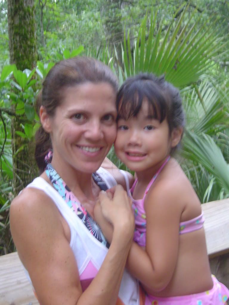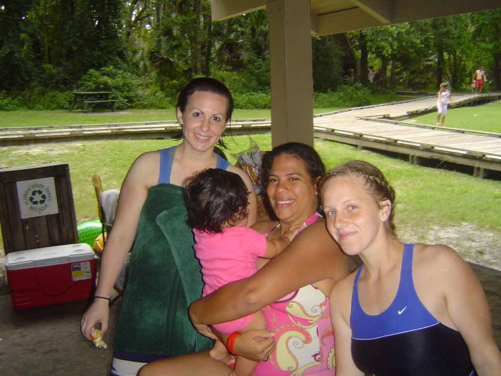 At the springs you can swim, scuba, canoe, or just float down the springs on an innertube.Sierra is at the bottom of the stairs ready to get in. She is brave . . . the water was too cold for me.