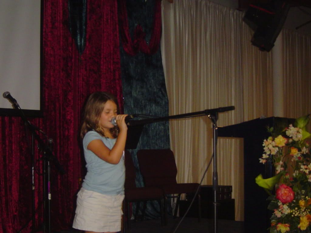 After we cleaned we decided to mess around a little bit. Sierra and I were the only ones at the church at this time. She was pretending to be the praise and worship leader.