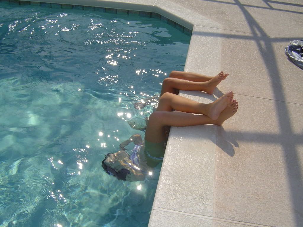 I know what Sierra and Alexia are doing there! I use to do that. You hang upside down in the water and hold your breath for as long as you can. Yep..oddly enough, I found that fun! :)