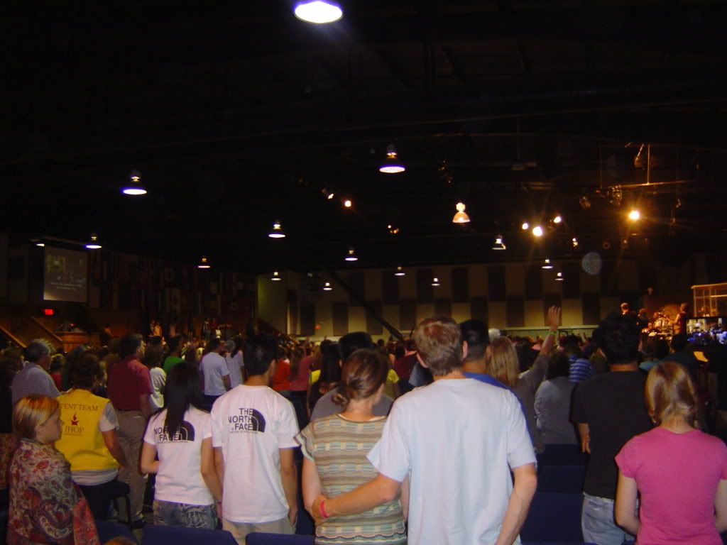 This evening we headed over to the auditorium . . .Mike Bickle who is the head of the IHOP Mission Base and the Forerunner School of Ministry was speaking tonight. While we were there I FINALLY got to see Taylor. It was so good to give him a hug and let him know how much we missed him. He sat in the middle of me and Carlos . . .and held my hand most of the service. . . .gotta love that boy!