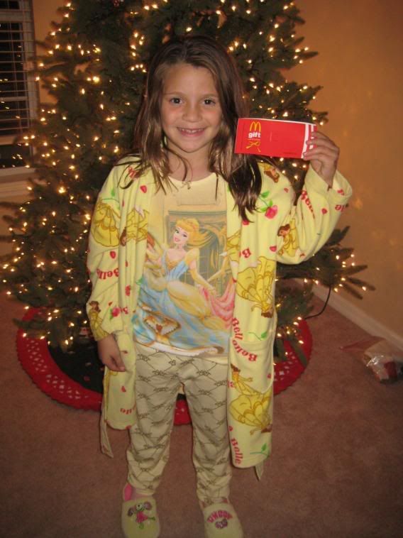 Sierra got these cute pajama's and a gift certificate to McDonalds. She was one happy camper!