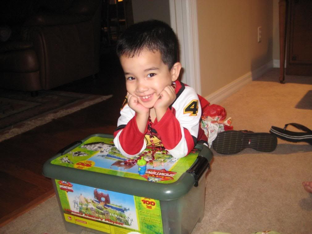 He always loves to play with Landon's army toys when he comes over so we got him a huge army kit for his very own.