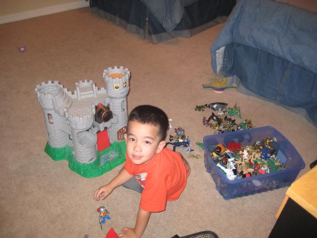 Christian played army men and Alexia was finishing up her bathroom. Taylor went to the movies with his uncle and Landon was at a friends house.